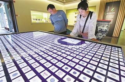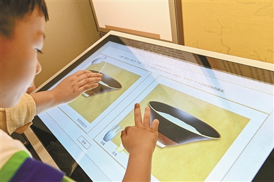 在茶样展示区,魔屏体验桌人气很旺,通过这个大屏观众可以查阅六大茶类和再加工茶类信息,对哪一个茶叶品类感兴趣,就可以用手指触碰屏幕,页面会自动弹窗介绍。有了这个魔屏,展陈方式也从“静态被动”向“主动交互”转变,内容更丰富,互动更有趣。
