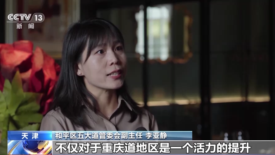 和平区五大道管委会副主任 李亚静:老建筑重获新生之后,不仅对于重庆道地区是一个活力的提升,对于整个五大道文化旅游区,还有天津的老建筑的开发利用,应该说都是一种探索和尝试。