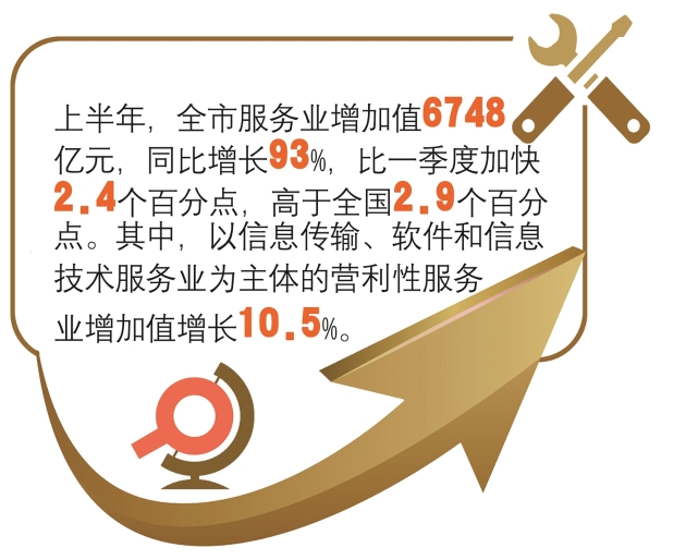 政策引领之下,杭州市上半年服务业持续向好,聚集型服务业快速恢复。上半年,全市服务业增加值6748亿元,同比增长9.3%,比一季度加快2.4个百分点,高于全国2.9个百分点。其中,以信息传输、软件和信息技术服务业为主体的营利性服务业增加值增长10.5%,侧面也展现出“重塑数字经济第一城”的决心。