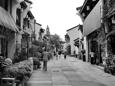 一面是白墙黛瓦的民居,大树下,老人们三三两两围坐在一起打牌聊天。古井旁,阿姨们在洗衣台上边搓洗衣服,边用杭州话聊着家长里短,孩子们则在一旁嬉戏打闹……这里依旧保持着最为朴实的杭州市井风情,生活气息扑面而来。