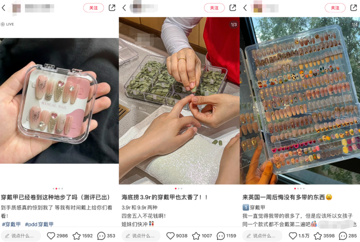 在社交平台上,网友分享穿戴甲
