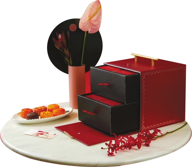 浙江世贸君澜大饭店今年的月饼礼盒主打一个“杭州风味”。月饼白色冰皮上刻有古典纹样,一个显眼的“宋”字位于中心,优雅宋韵袅袅袭来。月饼馅料里加入龙井茶、桂花,咬一口,是满满的杭州味道。此外,太阳花种子纸、杭城四季赏花地图、杭城四季特色车载香片等也被放入礼盒中。打开月饼礼盒,也就打开了一扇杭州文化的“小窗口”。