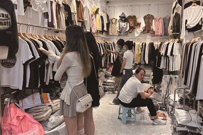 来自上海的游客正在挑选衣服