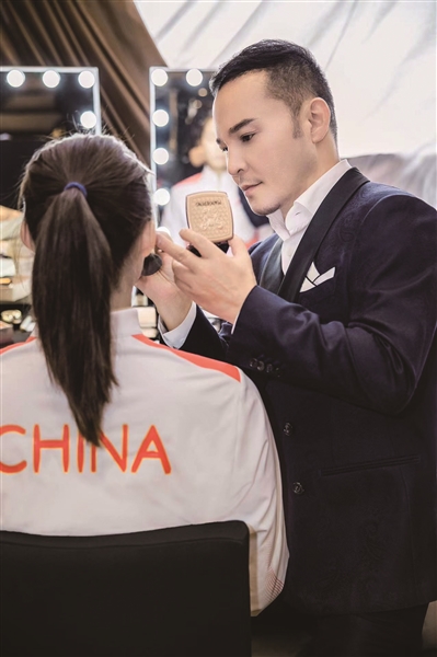 毛戈平在为运动员化妆