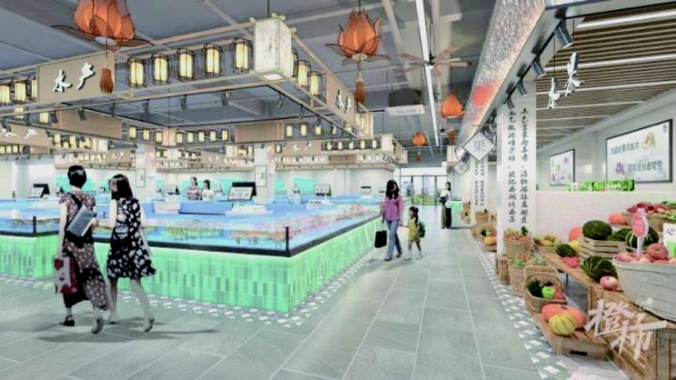西湖区崇仁路以东、文一西路以南,蒋村邻里荟的一、二层,也正在变身“蒋村柿集”,预计在2024年元旦投用,要打造一个总建筑面积超过4100平方米的五星级农贸市场,除了卖菜之外,还将引入餐饮、便民、娱乐等多元化业态,市场规划了93个商铺,沿街设有外摆区。北面增设文创市集,每个月都将提供磨刀、修补、理发等便民和画展、植物研学等活动;东南面增设自产自销区,周边老百姓种的菜,可以拿到这里来卖。