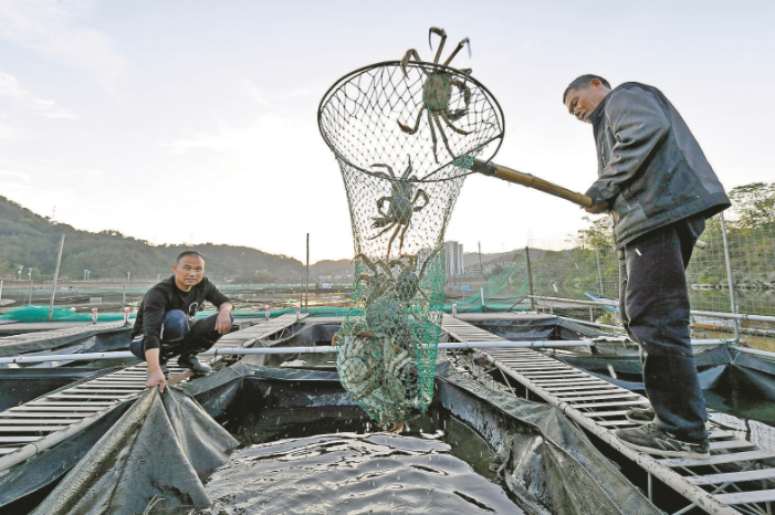 11月1日,建德市大洋镇第二届江鲜节火热开启,当地生态养殖的大洋螃蟹和“稻虾共生”的澳洲淡水龙虾成为引领江鲜美食、带动农旅融合、促进创新共富的当红主角。