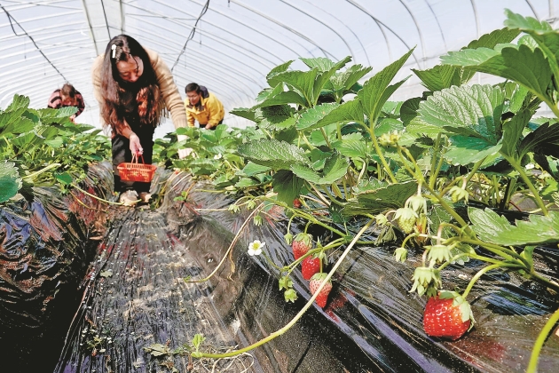 杭州日报 11月21日,在建德更楼街道“更有味”草莓共富合作工坊大棚内,“头茬”早熟草莓抢鲜上市,莓农们忙着采收新鲜草莓,通过快递发往杭州、上海等多地市场。近年来,更楼街道在于合村、张家村打造了330亩连片草莓共富合作工坊标准地,由政府统一流转土地、统一土地平整、统一建设大棚、统一对外招租,以创业带动就业,为村民提供田间管理、育苗养护、鲜果采摘、包装等工作岗位,不仅给村集体经济带来增收,也让村民在家门口就业,助推共同富裕。