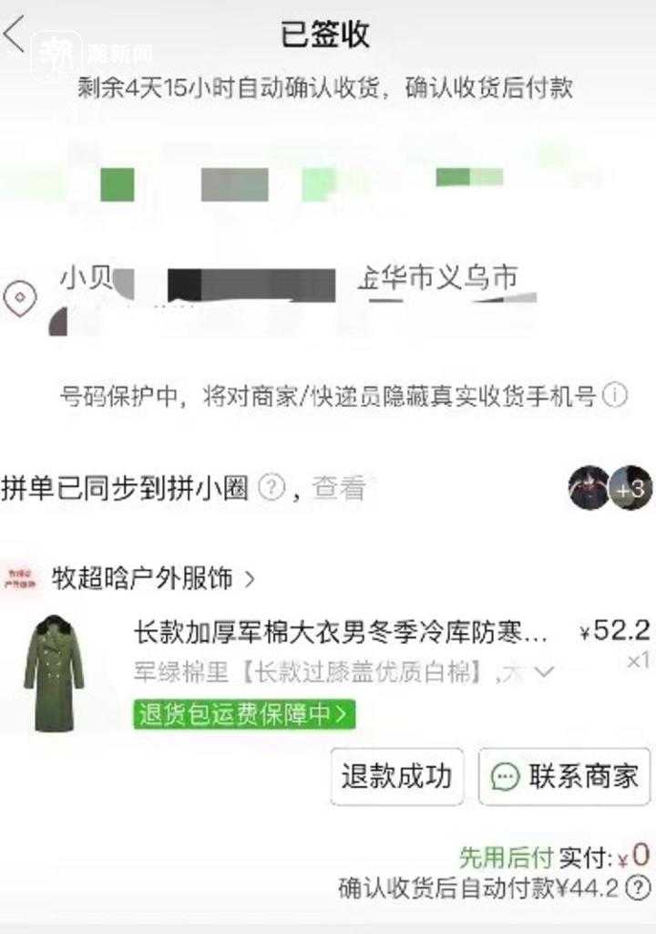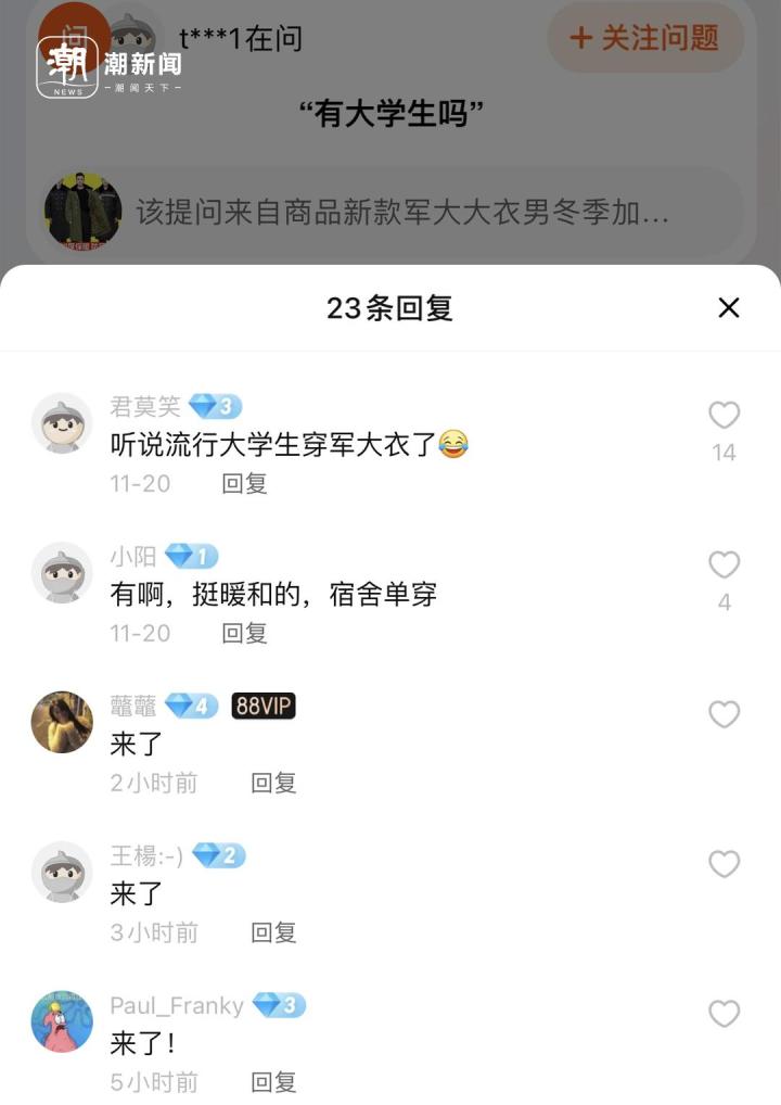 某销售军大衣的天猫旗舰店客服告诉记者,今年确实有不少单子地址来自于学校。“有的应该是一个寝室来下单的,一次性买了四五件。”