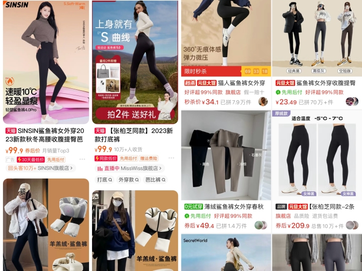 在各大电商平台搜索鲨鱼裤,销量10万+的店铺比比皆是。