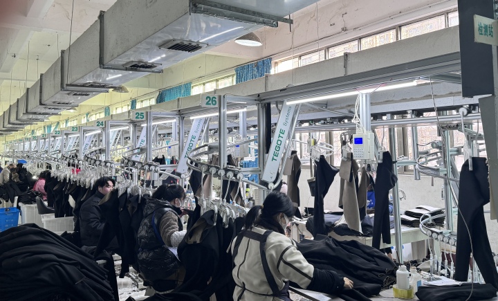 今年春节开工以来,来自国内外的大波秋冬季鲨鱼裤订单开始涌入义乌各个袜业工厂,工人们一刻不停地加工赶制,老板们则忙着与客户对接洽谈。
