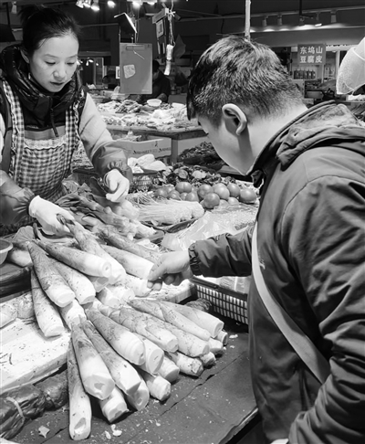 “现在冬笋价格很便宜,10元一斤就够了。春笋的话稍微贵一点,13元一斤。”记者询问了市场内多家摊贩,他们都表示与往年动辄三四十元一斤的冬笋相比,今年冬笋的价格跌了不少。