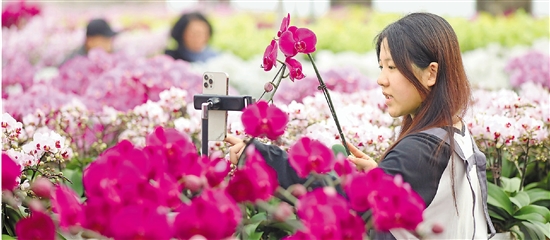 新春将至,“年宵花”的当家花旦蝴蝶兰成了抢手货。1月9日,杭州市余杭区浙江启美生态农业有限公司大棚内各色蝴蝶兰竞相绽放,令人目不暇接。不少消费者前来选购,为新年添彩头、增喜庆。
