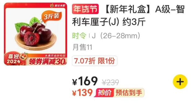3J智利车厘子每斤降价108元