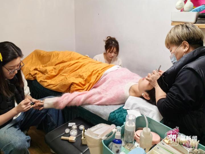 说着,又有2位顾客推门进来。店长清姐热情地迎了上去,了解到其中一位既要美甲又要美睫后,便招来另外两位店员一同服务,“三个人同时开工,我负责美睫,她们一人负责一只手的美甲,这样快。”