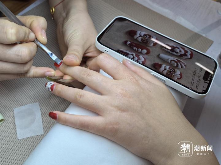 “这个醒狮太可爱了,能照着图片给我做一个吗?”中山北路的Cherry nail店里,小雅向店员展示自己心仪的图样,“这种喜庆祥瑞的图案很适合过年,而且它是立体的,很特别。”