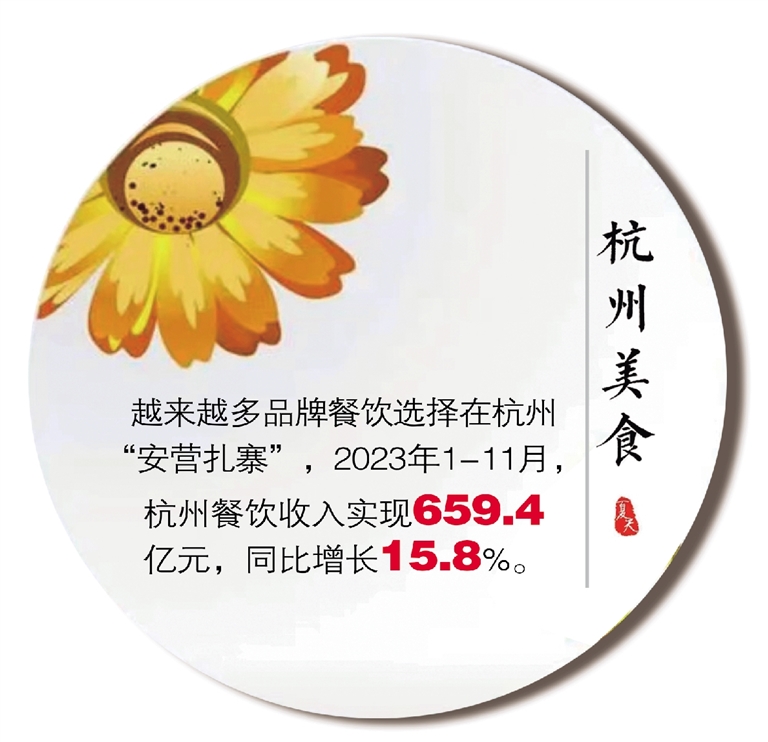 在业态分布上,餐饮占比超过一半。越来越多品牌餐饮选择在杭州“安营扎寨”,比如奇华饼家、裕莲茶楼、茉莉奶白、柠檬向右、杨记隆府等。2023年1-11月,杭州餐饮收入实现659.4亿元,同比增长15.8%。杭州的美食产业极富有潜力,越来越有活力。