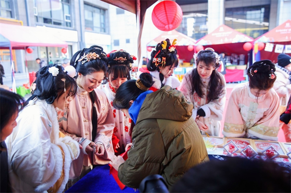 在这里,李阿姨吃到了暖乎乎的羊锅:“寒冬里来一碗羊汤,身子都暖啦!”热气蒸腾的朝鲜打糕前围了一圈人,糯叽叽的口感俘获了众多吃客的心。糖葫芦、面塑、剪纸等,把人们对传统文化的回忆拉满……