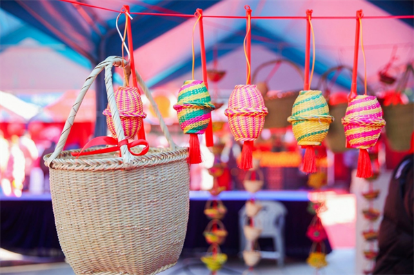 小巧精致的西溪小花篮是西湖区蒋村一带的民间工艺品,相传已有150多年历史,是很多杭州人的儿时玩具,也曾经是来杭游客必买的爆款纪念品。洪丽萍是西溪小花篮的非遗传承人,这次她也将西溪小花篮带到了年货节上。“我这次带来了12个品种的小花篮,有小花篮的灯笼,还有保温杯、菜篮等。”