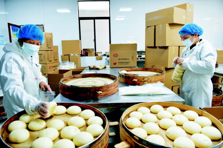 春节临近,手工酒酿馒头进入销售旺季,桐庐城南街道仁智村邱根良食品有限公司内,十多名工人正紧张有序地揉粉、制作、蒸熟、打包、装箱,开足马力加紧生产,保障节日市场供应。