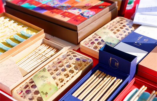 活动当天王星记带来龙年主题扇白纸扇《九龙图》《紫微》,天竺筷带来《龙凤呈祥》天竺筷并倡导“新年用新筷”,小巷三寻带来“织竹”杯垫台历等“寻梭之旅”创新转化产品等。一件件非遗好物,引得市民和游客驻足观赏、争相购买。