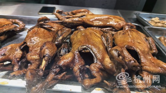 位于东山弄市集一楼的光头卤鸭就不得不提了。“杭州老底子什么味道,我们就是什么味道。”光头卤鸭店长介绍,店里的每一只鸭子,都是来自于自己的养殖基地,每天早上6点前送来后,就在店里配备的操作间现卤。每斤37.8元成为了周边市民餐桌上的常客。
