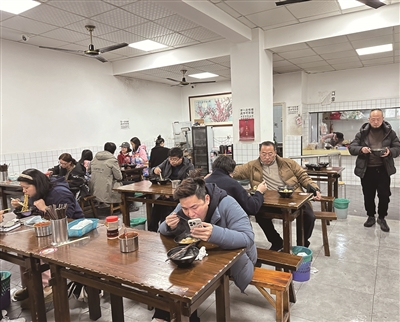 经询问,记者了解到他家2月5日开始放假,初八(2月17日)再开店。“店里的盖浇饭、盖浇面点的人也很多,尤其是番茄牛肉面、香干肉丝饭,都是一份份现炒的。因为大众化,价格也实惠,所以比较受欢迎。蒜蓉虾滑粉丝汤也是特色,年轻人会更喜欢”店员胡先生说。